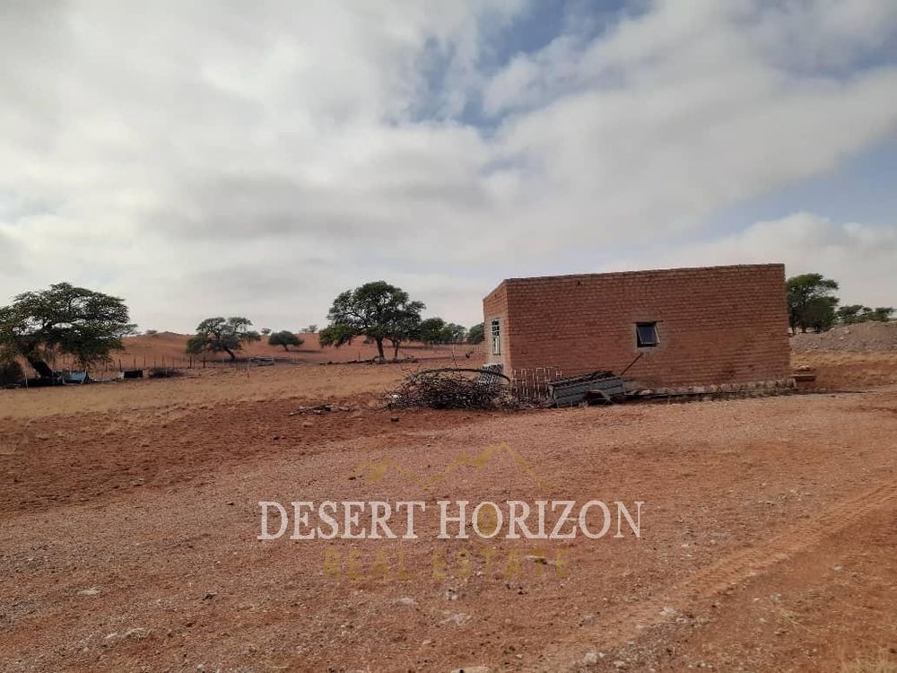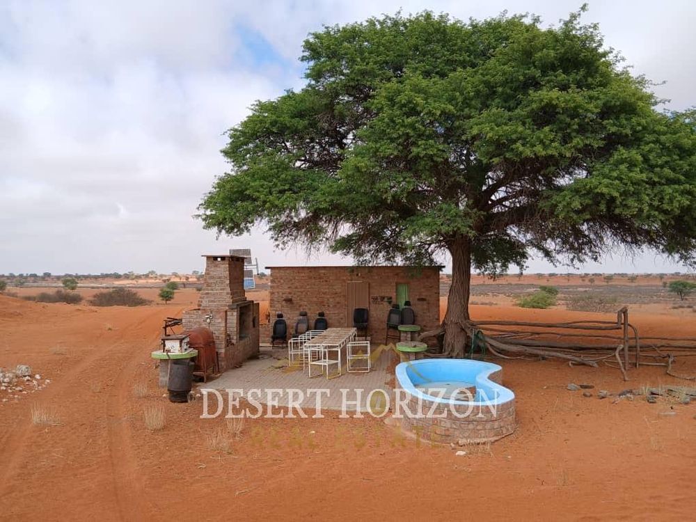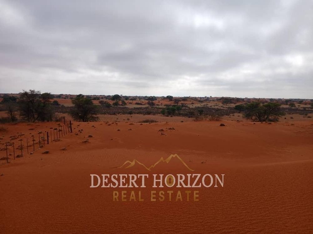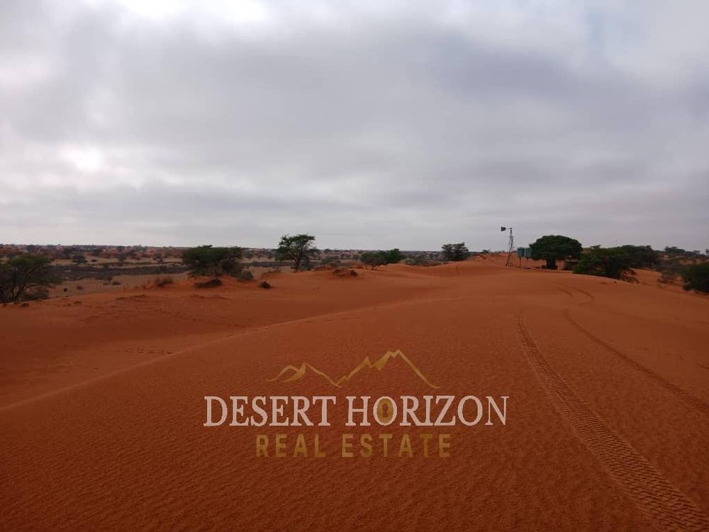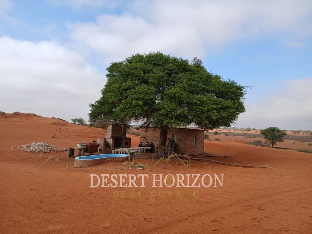 A unique and breathtaking red‐dune farm, where the dramatic crimson dunes meet the sky, nestled in the heart of Namibia’s Kalahari landscape. Here is what makes this farm special: