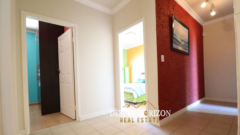 Step inside to discover a beautifully designed open-plan entertainment area, seamlessly connecting the living space with a charming balcony. From here, you can enjoy distant sea views, creating a tranquil atmosphere for relaxation or entertaining guests.