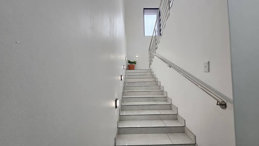 On the ground floor, you’ll find the spacious living area as you enter through the front door, with large sliding doors that open up to the outside – perfect for indoor-outdoor living.