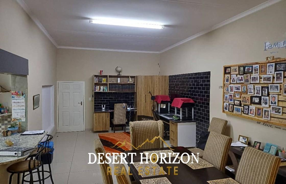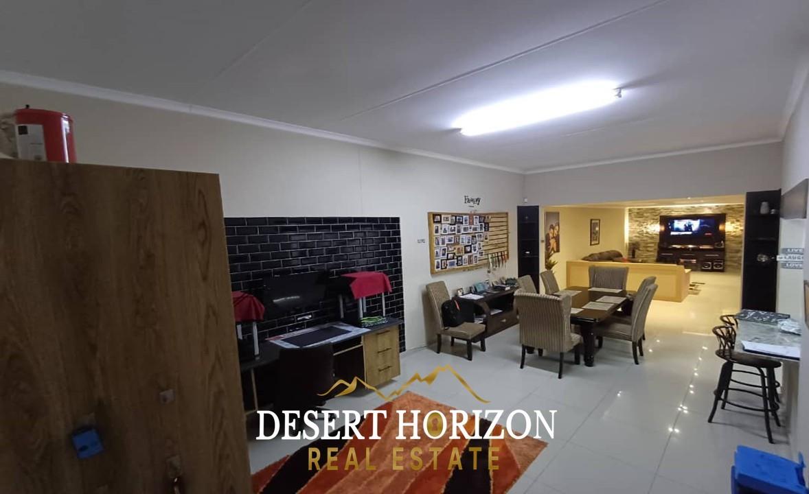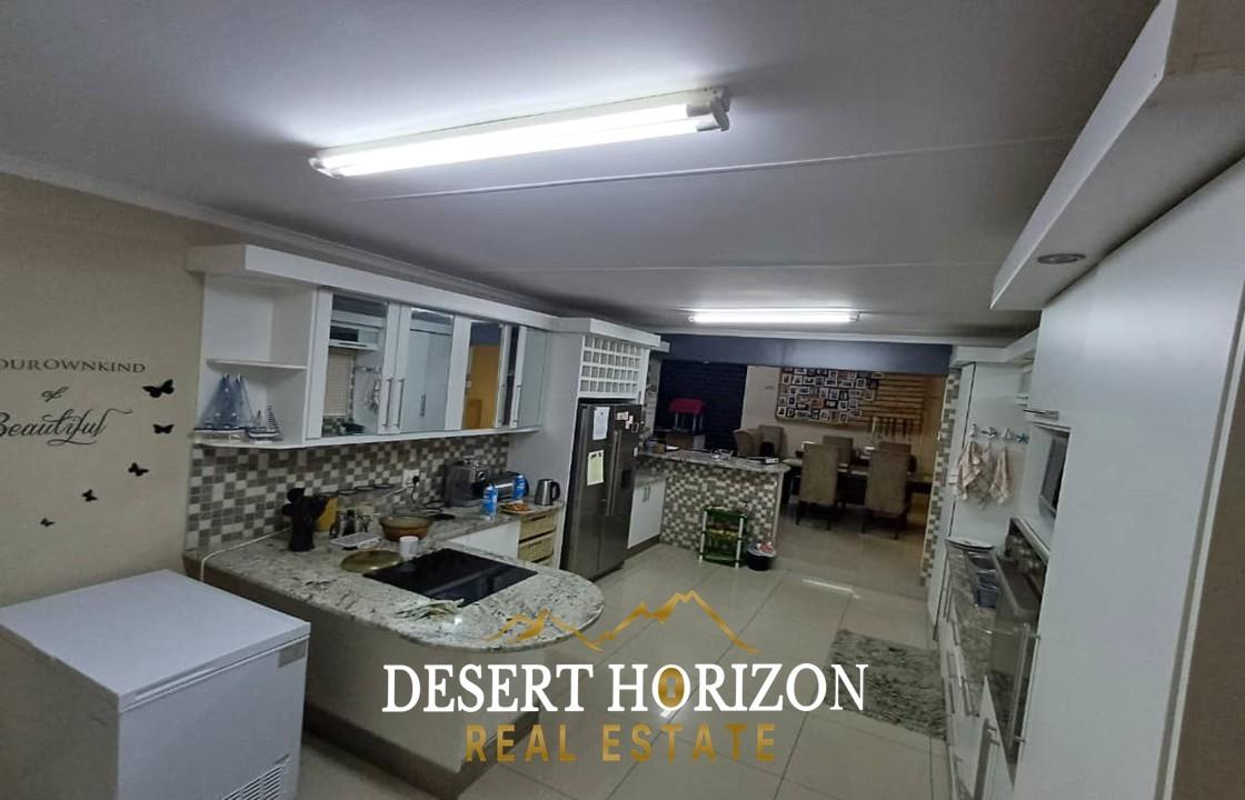 Upon entering, you are welcomed into a spacious living room that seamlessly integrates an entertainment area with an indoor braai, ideal for hosting gatherings or enjoying cozy evenings with family. Adjacent to the living space is a well-appointed dining area, perfect for intimate meals or larger celebrations.