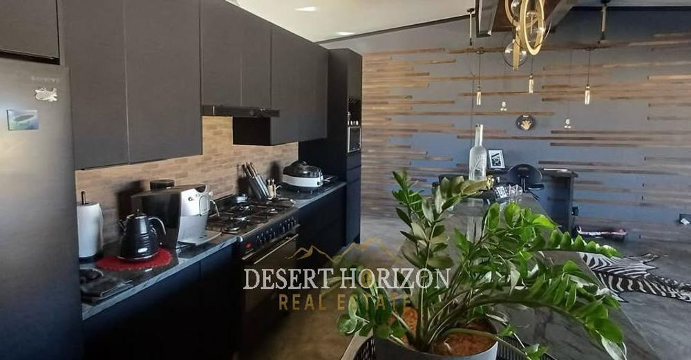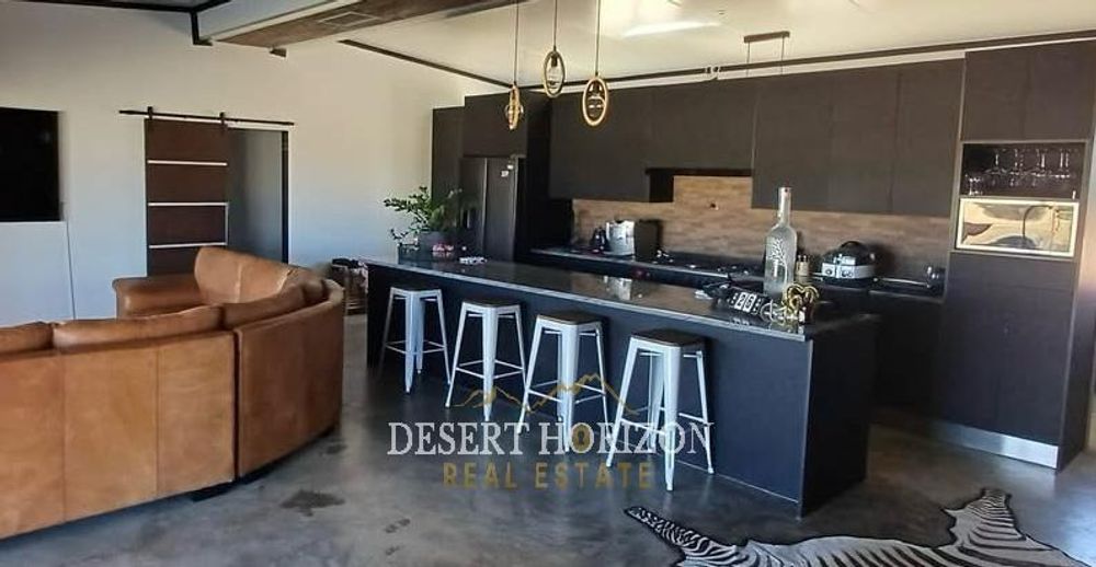Stylish modern open-plan kitchen, scullery, lounge, and dining area