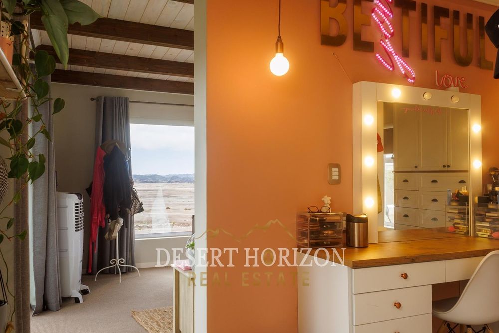 Situated on the outskirts of Swakopmund, this property provides the perfect balance of seclusion and accessibility. Enjoy breathtaking desert panoramas and starry nights while being only minutes away from the vibrant City center and its pristine beaches. The location offers direct access to thrilling activities like quad biking, sandboarding, and wildlife tours, making it an ideal hub for ecotourism or a peaceful haven.