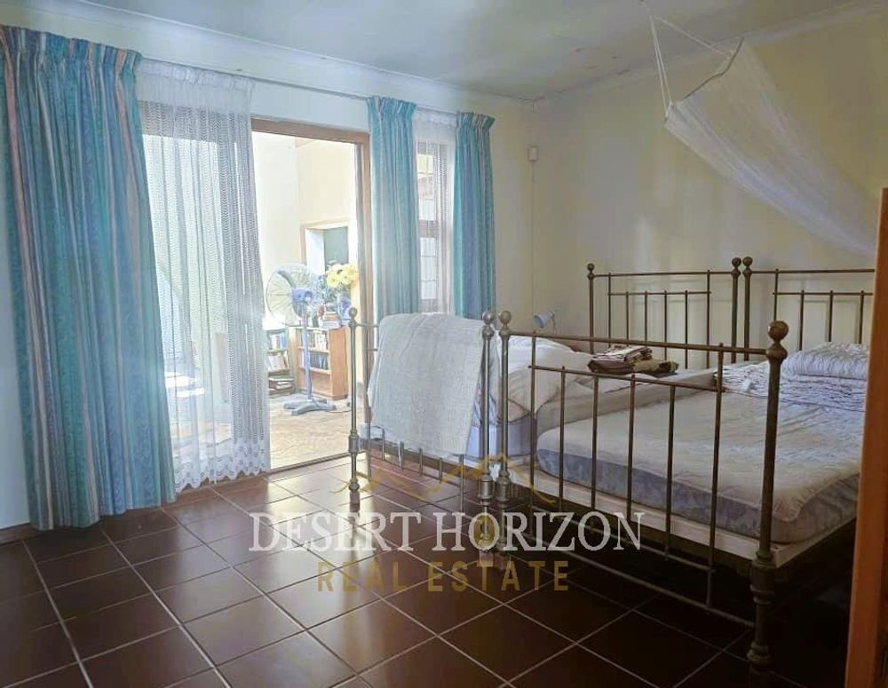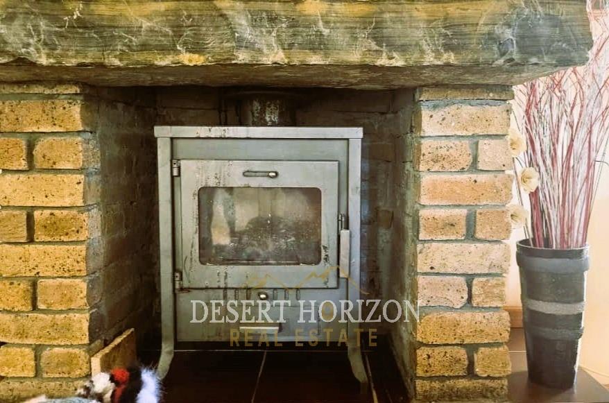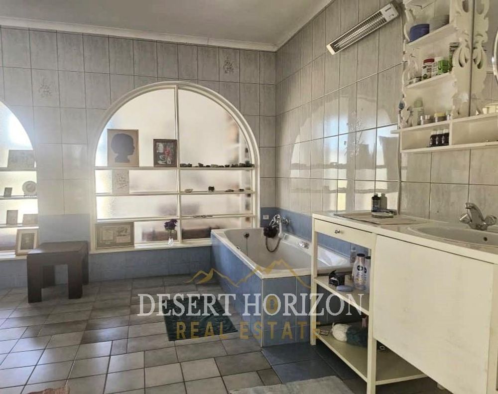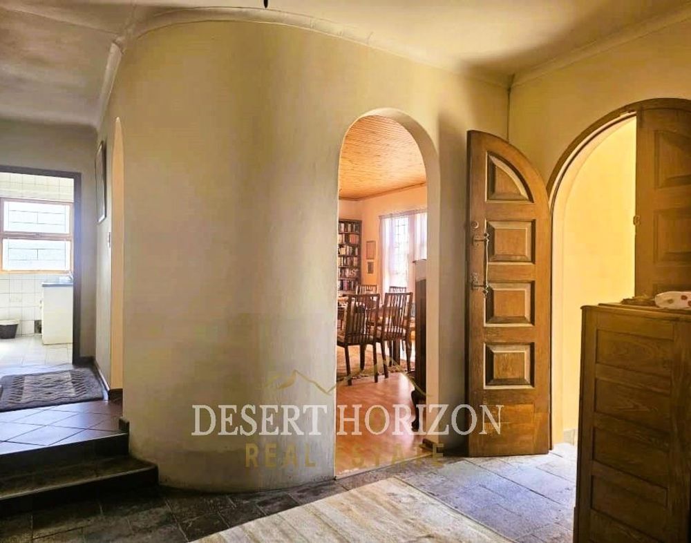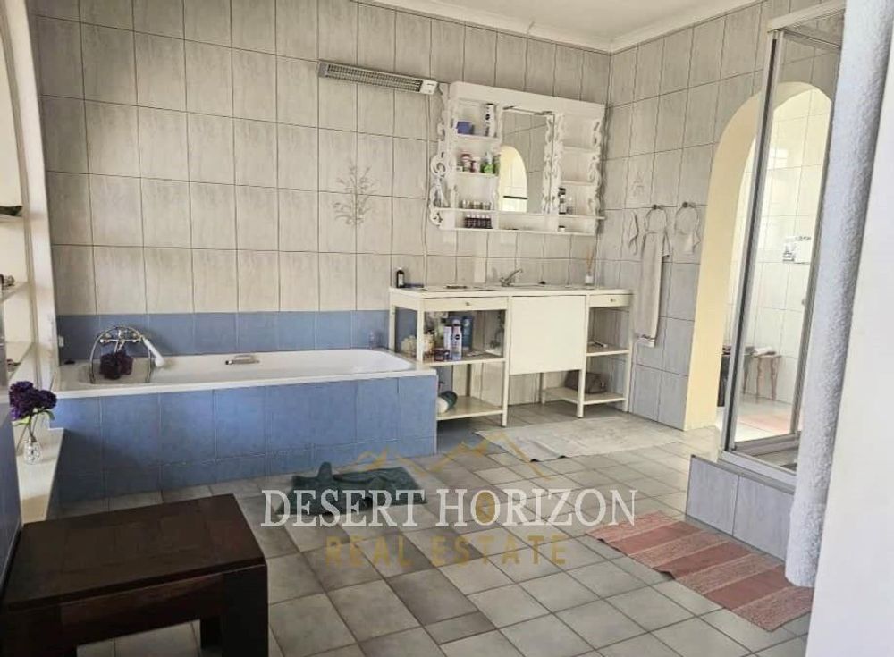 Step into the grandeur of the main house, featuring five spacious bedrooms and four elegantly designed bathrooms. The home is equipped with two dining rooms and a living room that boasts a cozy fireplace, perfect for family gatherings or entertaining guests. The open-plan kitchen is designed with functionality in mind, complemented by an enclosed inner courtyard that brings a touch of tranquility to everyday living. Additional amenities include a laundry, scullery, office space, and a workshop. The first-floor entertainment area, crafted from stunning lead wood, promises endless enjoyment and sophistication. Two double garages provide ample parking, while built-in cupboards (BIC) offer convenient storage solutions. The main bedroom is equipped with a safe for added security, and two solar panels ensure energy-efficient hot water supply.