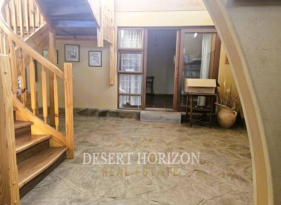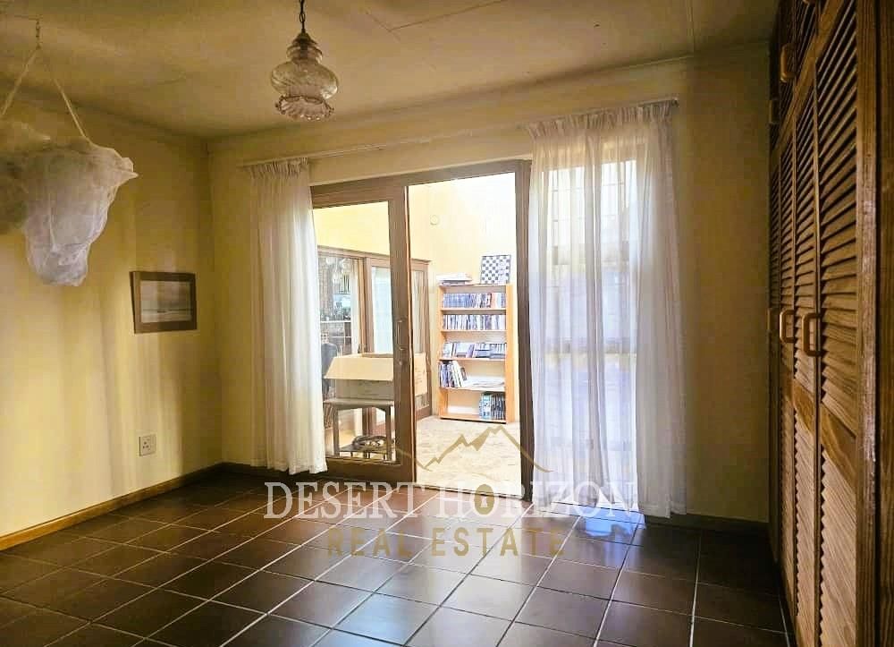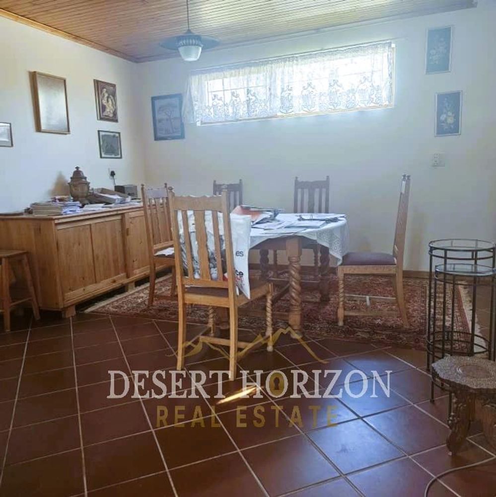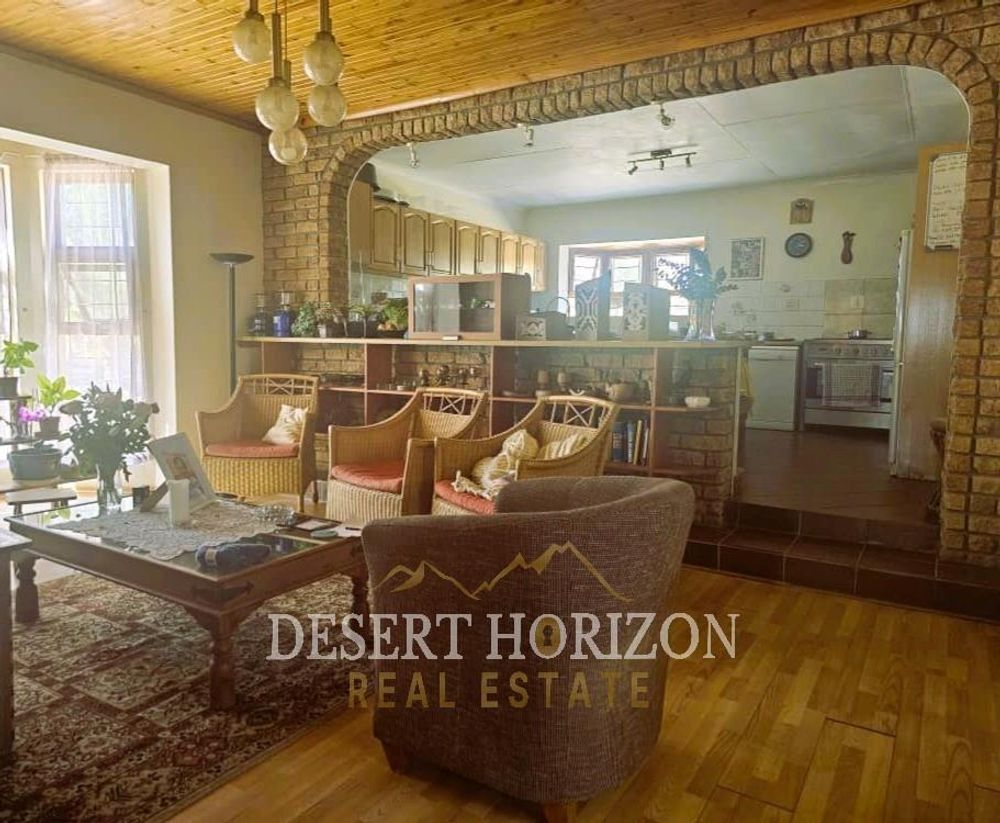 Step into the grandeur of the main house, featuring five spacious bedrooms and four elegantly designed bathrooms. The home is equipped with two dining rooms and a living room that boasts a cozy fireplace, perfect for family gatherings or entertaining guests. The open-plan kitchen is designed with functionality in mind, complemented by an enclosed inner courtyard that brings a touch of tranquility to everyday living. Additional amenities include a laundry, scullery, office space, and a workshop. The first-floor entertainment area, crafted from stunning lead wood, promises endless enjoyment and sophistication. Two double garages provide ample parking, while built-in cupboards (BIC) offer convenient storage solutions. The main bedroom is equipped with a safe for added security, and two solar panels ensure energy-efficient hot water supply.
