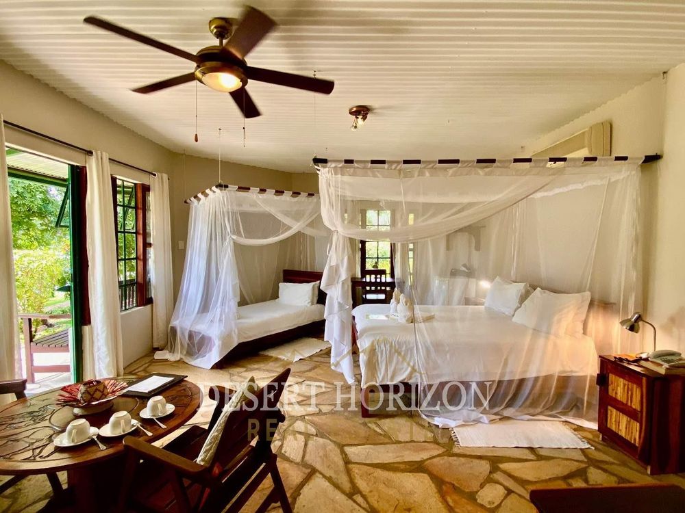 Set in lush gardens with over 80 fruit and indigenous trees, the property attracts a variety of colorful Kavango bird species. With two ervens (1123 & 3520), there is exciting potential to expand by adding 4–8 new self-catering units, meeting the high demand in the area.