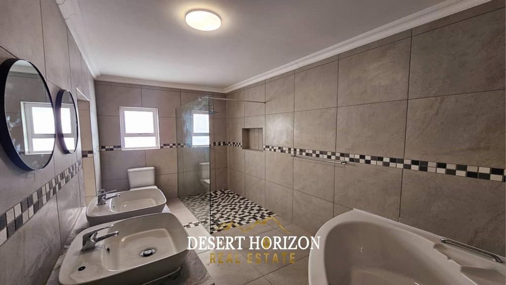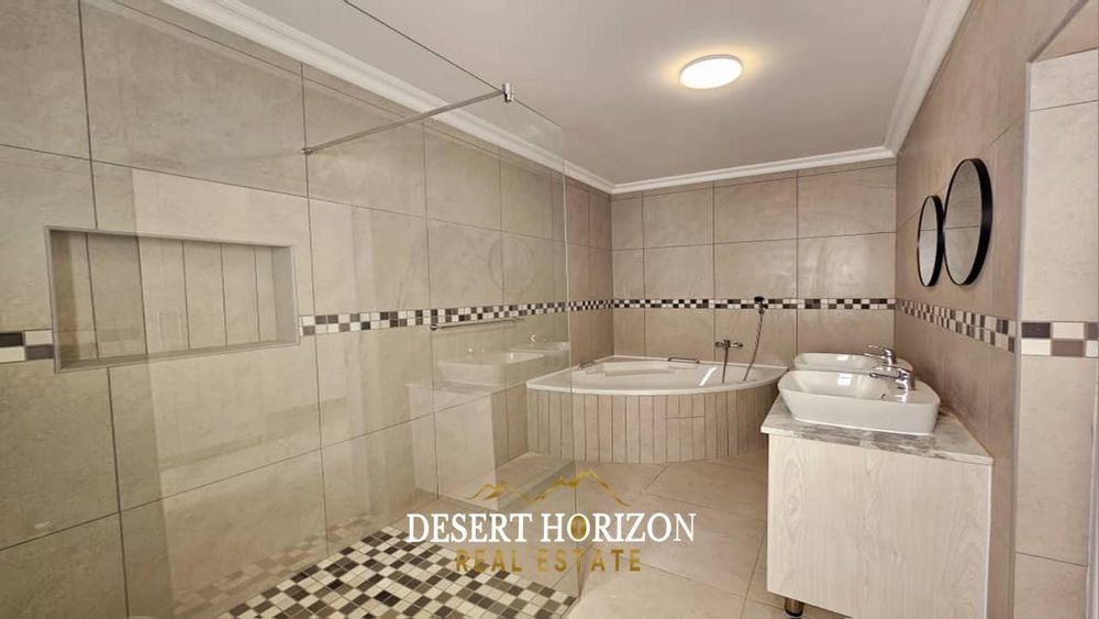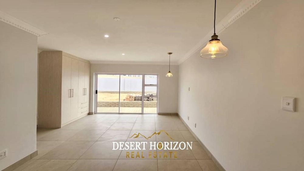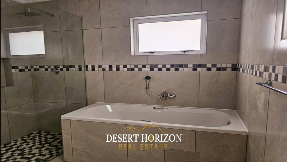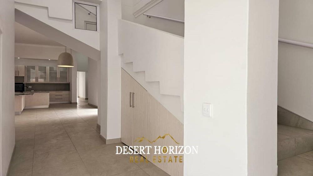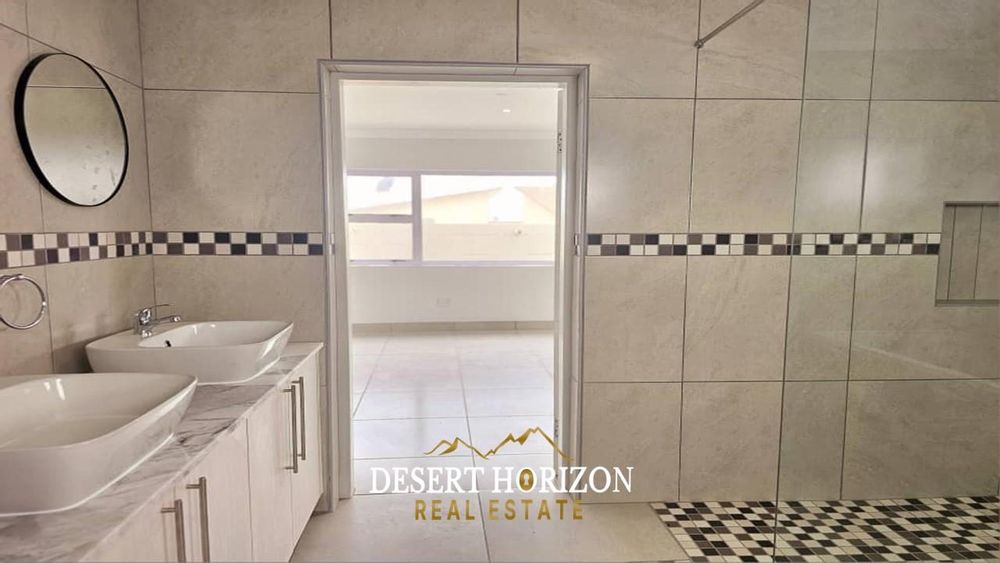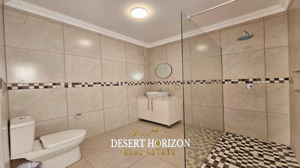 As you enter, you are greeted by a spacious reception area that seamlessly flows into a versatile room that can serve as an office or additional bedroom. The heart of the home is the expansive open-plan kitchen, which boasts beautiful large lights and a functional island with a gas stove. Adjacent to the kitchen is a dining area perfect for family gatherings. A generous scullery complements the kitchen, providing ample storage and utility space.