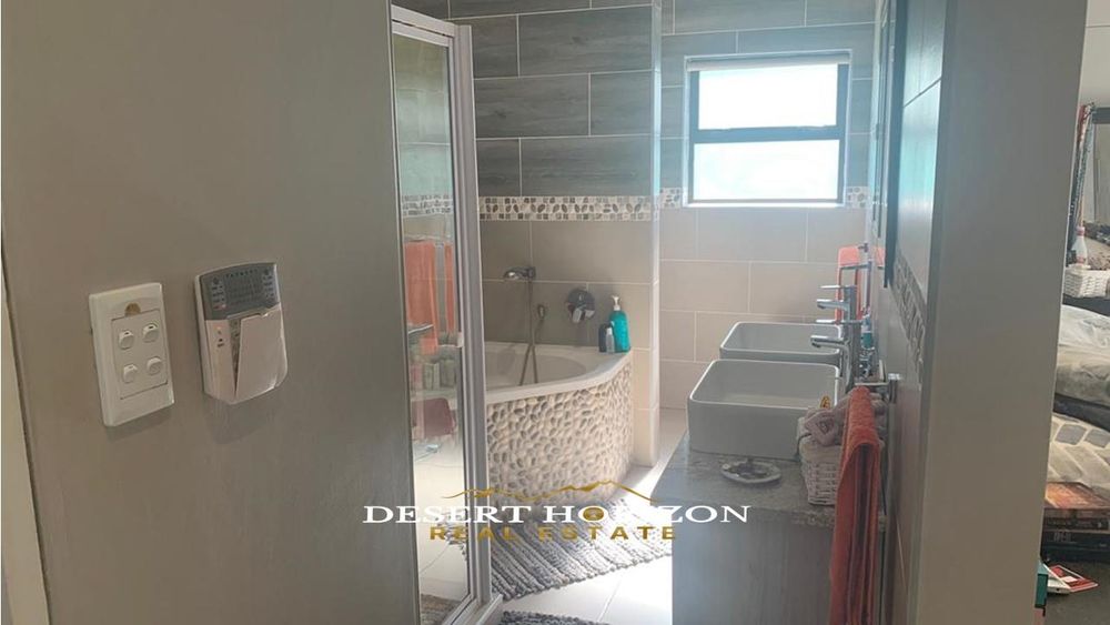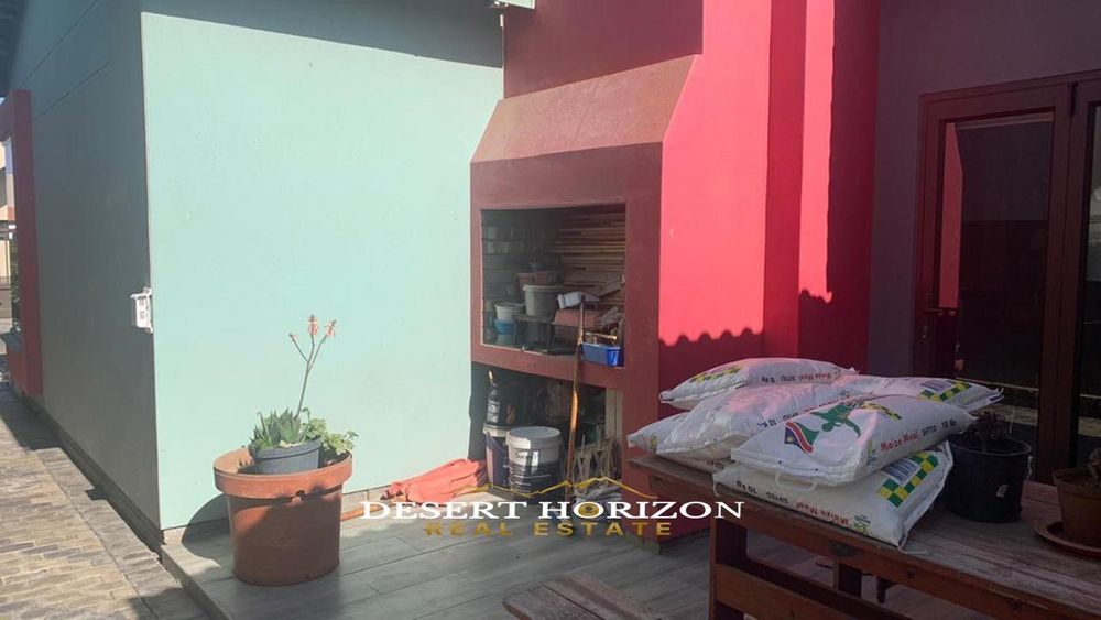 The heart of the home is the modern kitchen, complete with a separate washup room to keep everything organized and tidy. Entertain with ease in the indoor braai area, perfect for hosting gatherings with friends and family. The dining area seamlessly integrates with the living spaces, creating an open and inviting atmosphere.