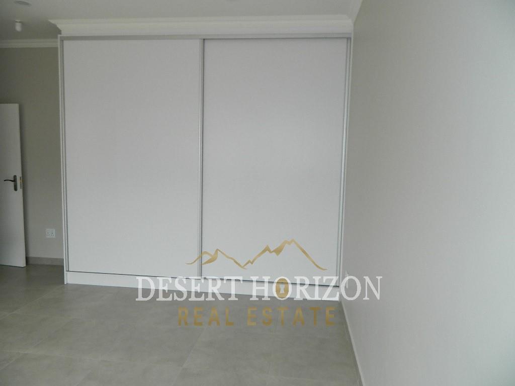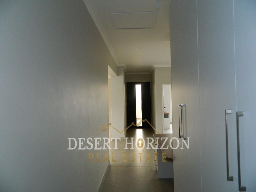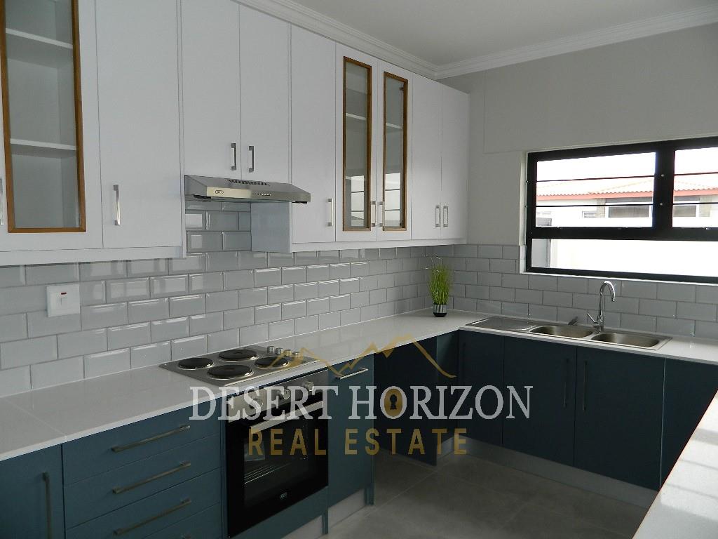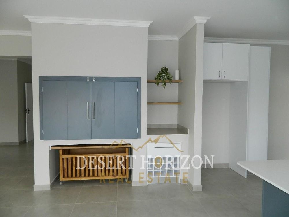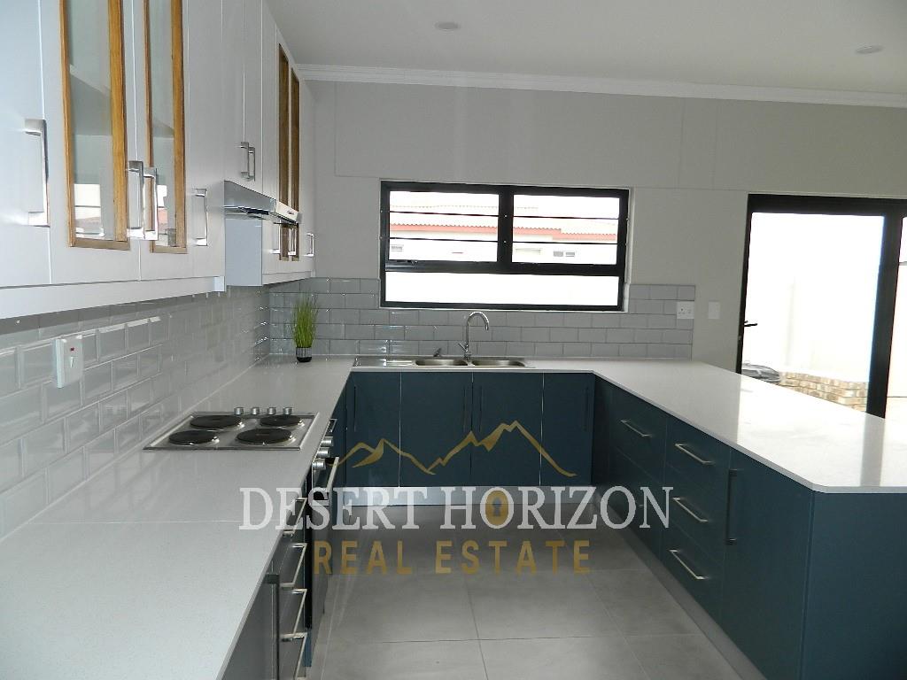 The residence boasts three spacious bedrooms, each featuring its own en-suite bathroom and generous cupboard space, ensuring privacy and convenience for all members of the household. The open-plan living area and kitchen create a seamless flow, ideal for entertaining or simply enjoying quality family time. The kitchen is well-appointed and designed for both functionality and elegance.