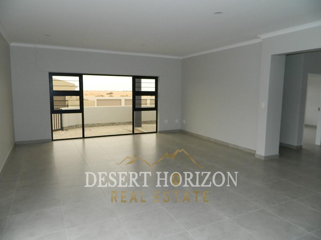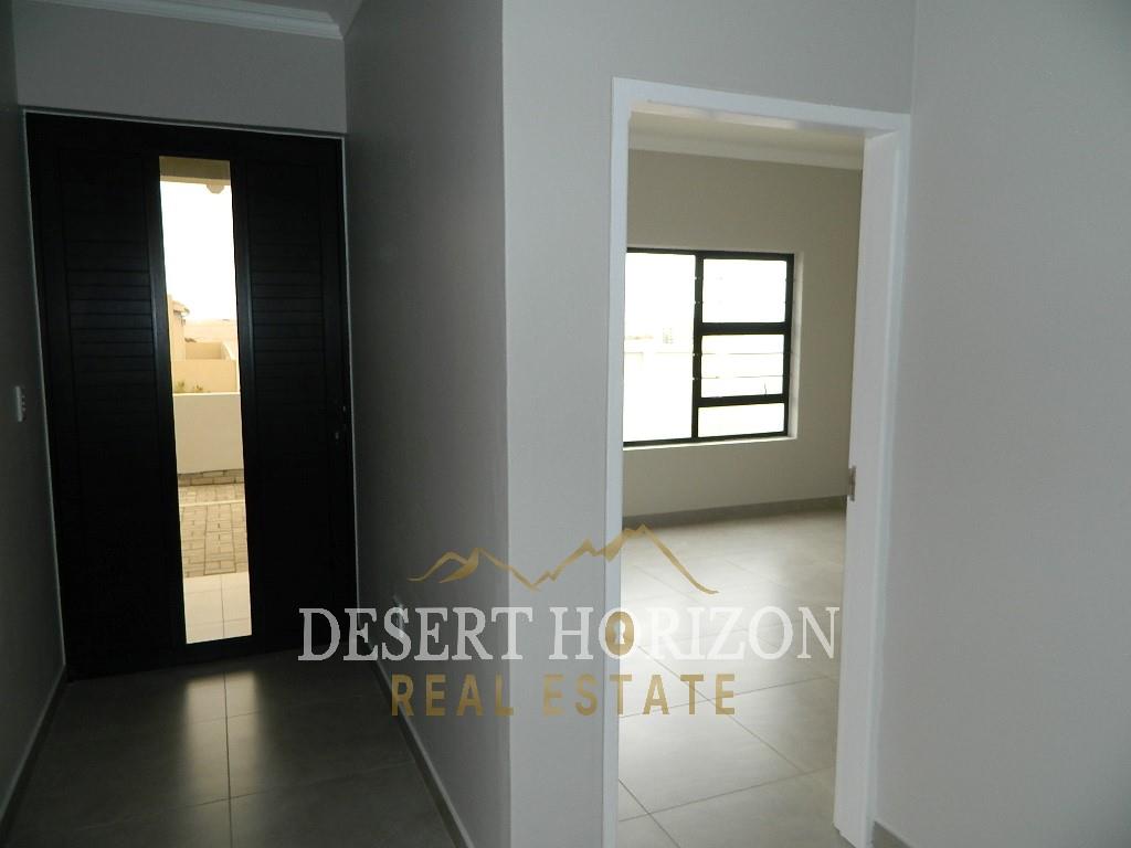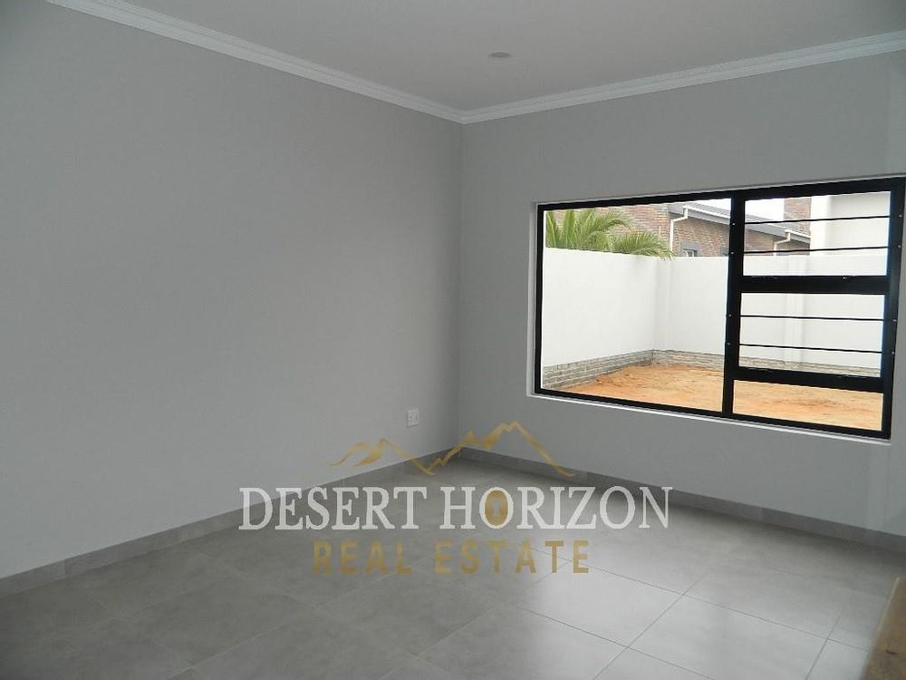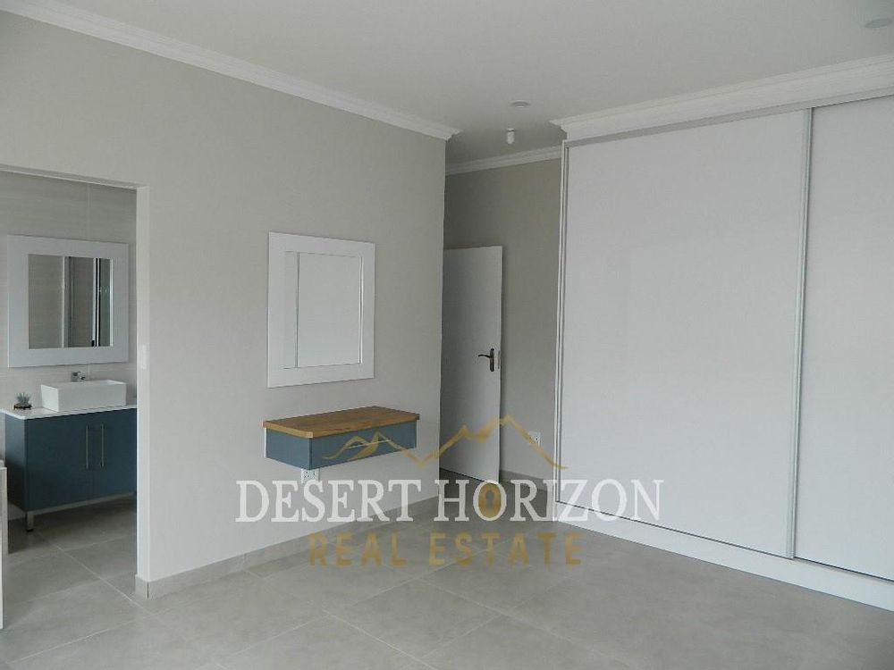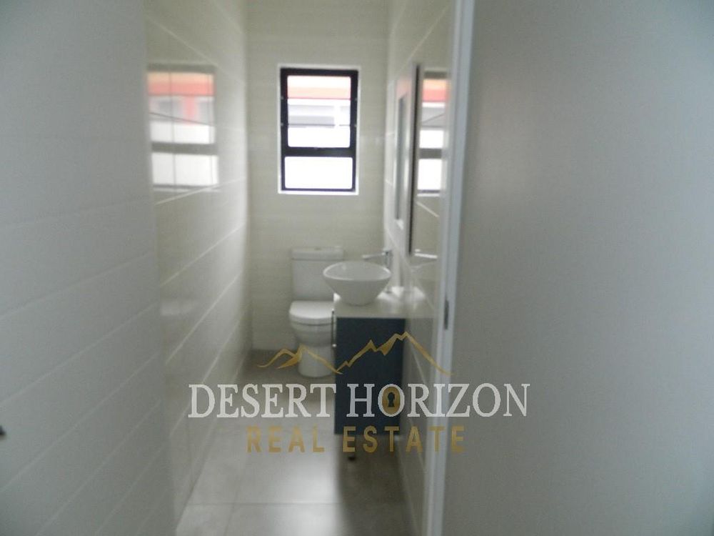 The residence boasts three spacious bedrooms, each featuring its own en-suite bathroom and generous cupboard space, ensuring privacy and convenience for all members of the household. The open-plan living area and kitchen create a seamless flow, ideal for entertaining or simply enjoying quality family time. The kitchen is well-appointed and designed for both functionality and elegance.