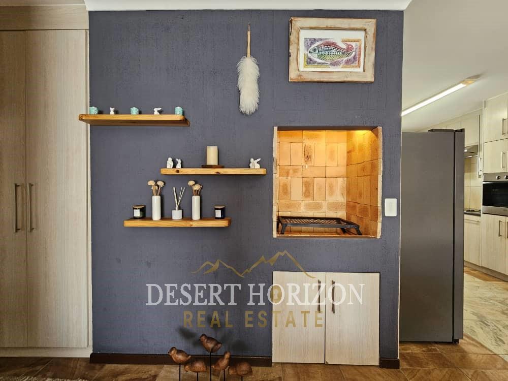 This inviting residence boasts three spacious bedrooms and two well-appointed bathrooms, including a luxurious ensuite in the master bedroom. The open-plan kitchen and living area create a warm and welcoming atmosphere, perfect for entertaining or enjoying family time. The kitchen is complemented by a convenient scullery that provides additional storage and workspace. An indoor BBQ area enhances the home's leisure appeal, promising delightful gatherings all year round.
