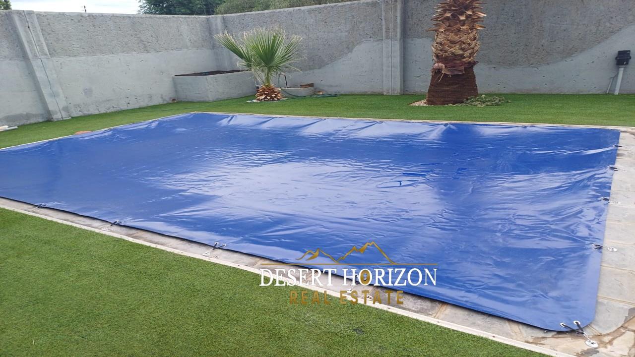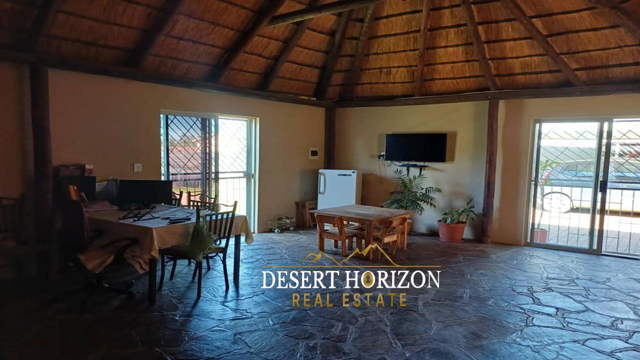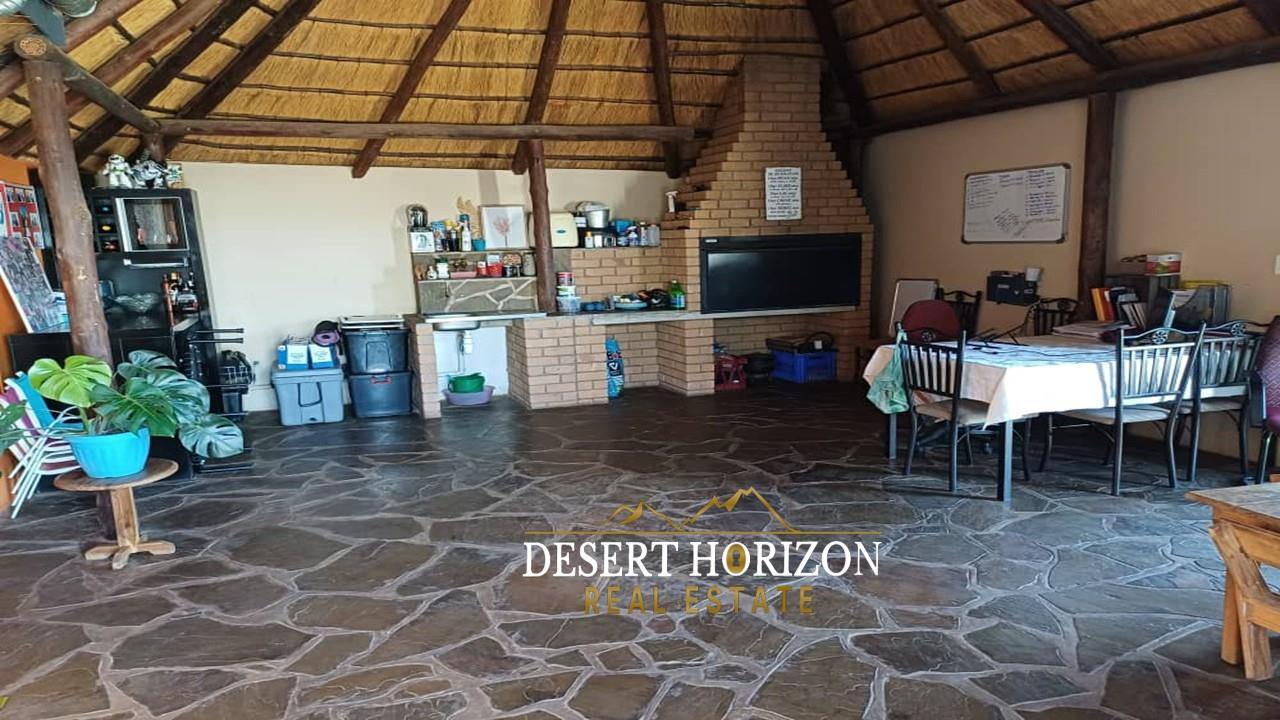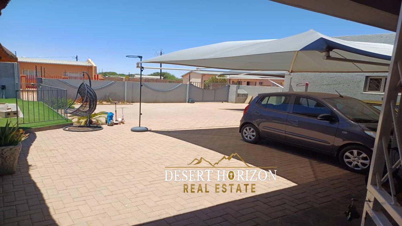Step outside to discover a huge entertainment area complete with a built-in braai, perfect for hosting barbecues and outdoor parties. The sparkling swimming pool offers a refreshing escape from the Namibian sun, providing endless opportunities for relaxation and enjoyment.