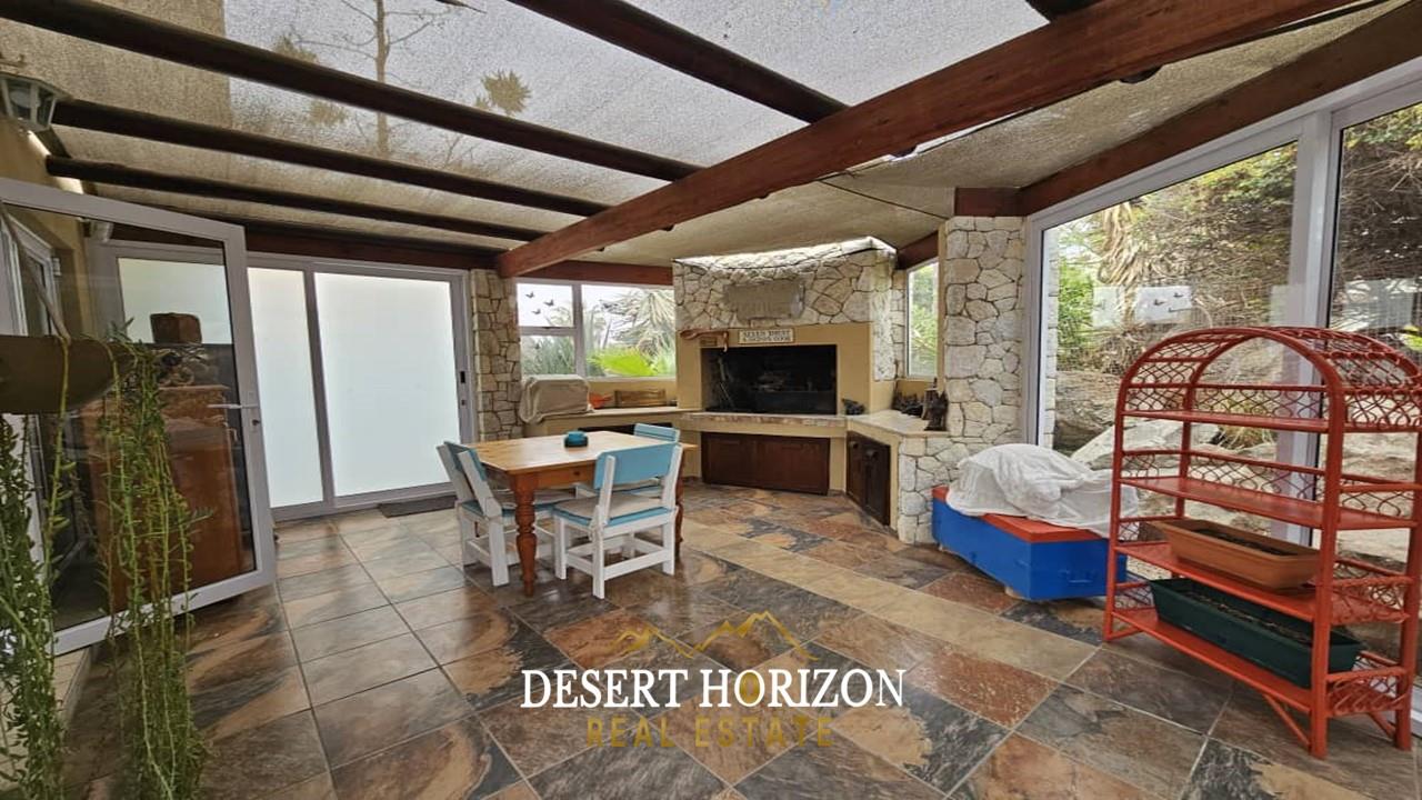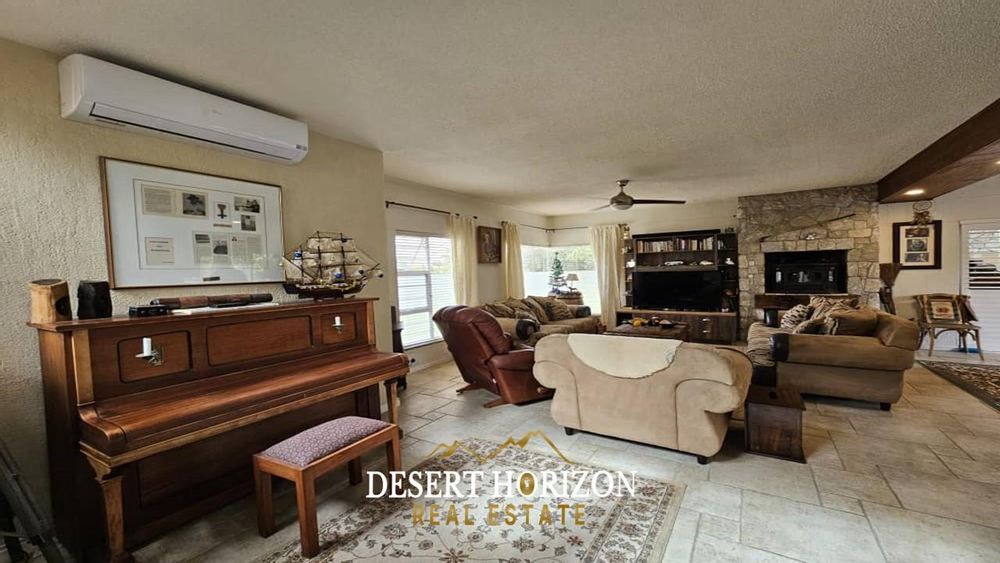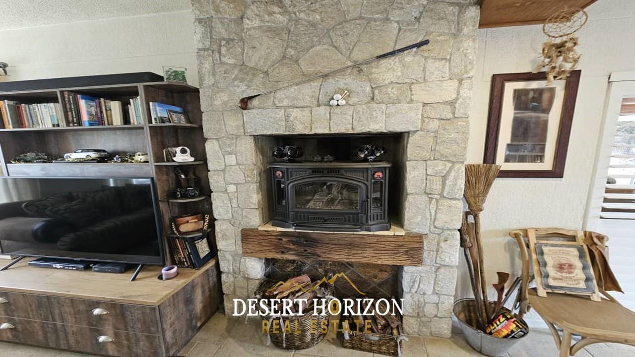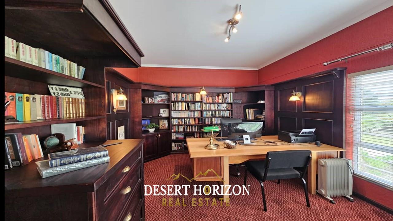You'll find an office equipped with built-in cupboards, providing an ideal workspace for remote working or study. The living area boasts a cozy fireplace, perfect for warming up on chilly evenings, while two air conditioning units ensure comfort during the warmer months.