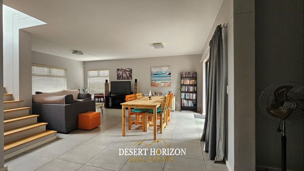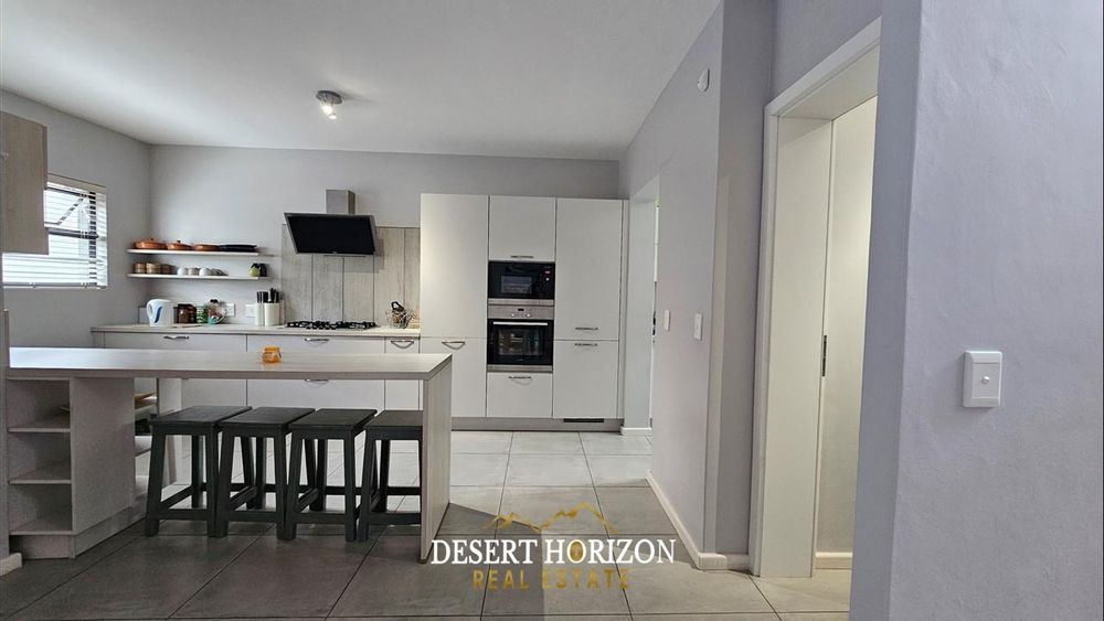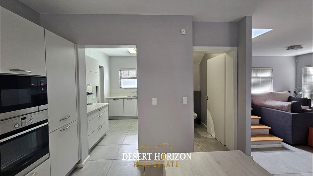 The thoughtful design extends to the practicalities of daily life, offering a double garage for secure parking and storage. Embrace sustainability with solar electricity powering outdoor lights and the geyser, adding an eco-friendly touch to your modern lifestyle.