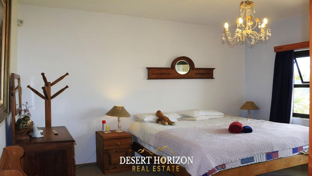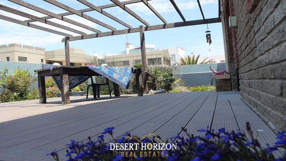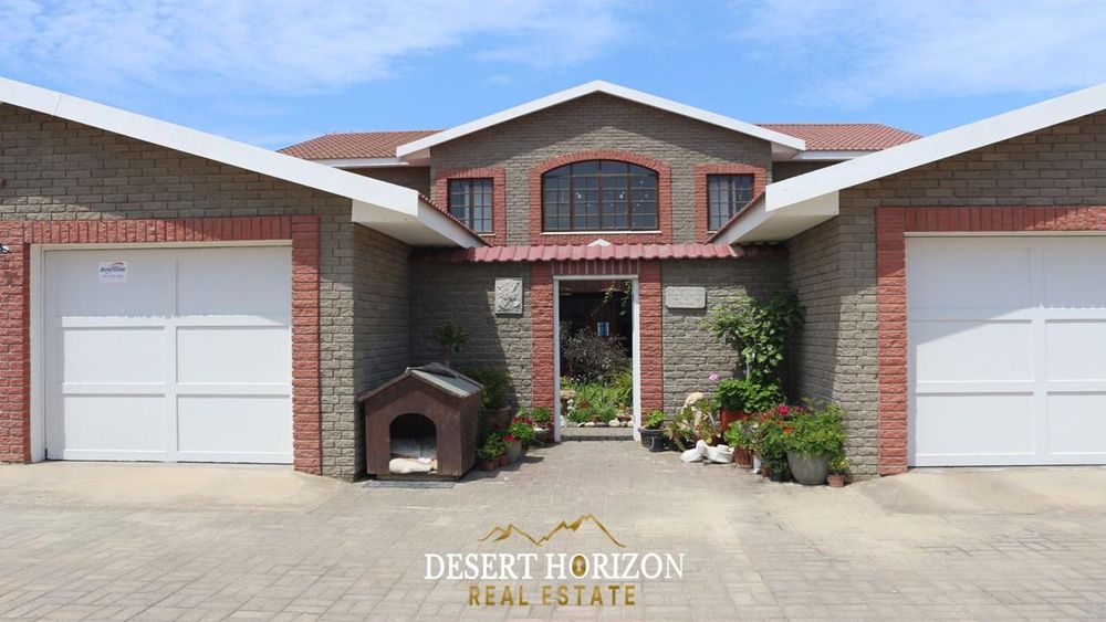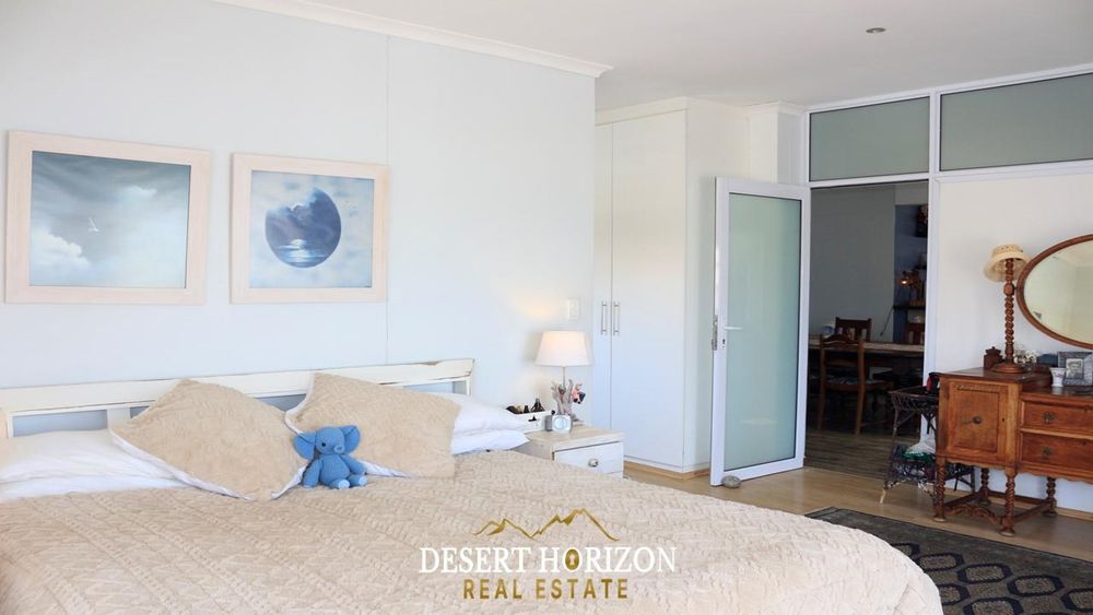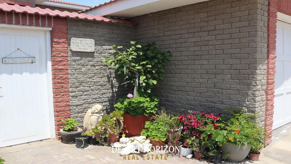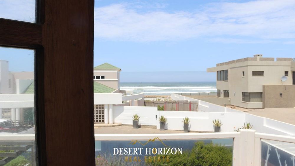 Charming 1-bedroom cottage with private beach pathway, a versatile 2-storey house featuring 5 bedrooms, 3 ensuites, and 3 WC toilets. Boasting 2 open-plan kitchens with a scullery, the house can be divided for flexible use. Ideal for Airbnb or a multi-generational family, it includes indoor/outdoor BBQ, sea views, a pizza oven, bar, fireplace, 2 balconies, nanny room, and more. Walk to the ocean from this enchanting home in Swakopmund—don't miss out!