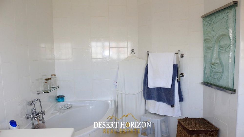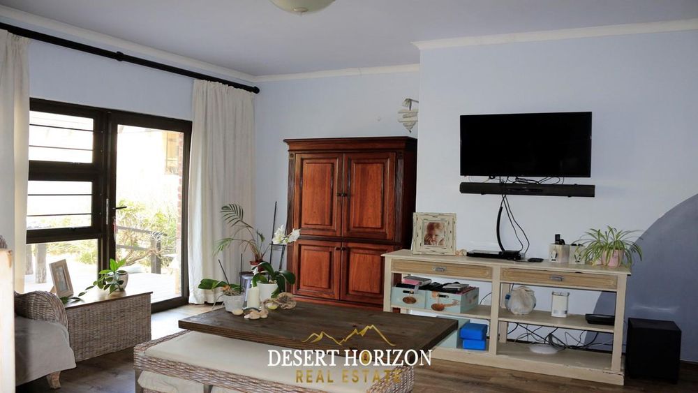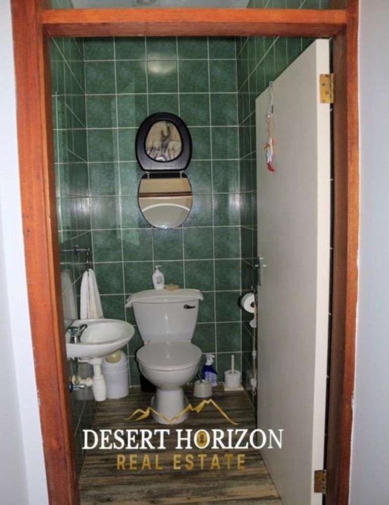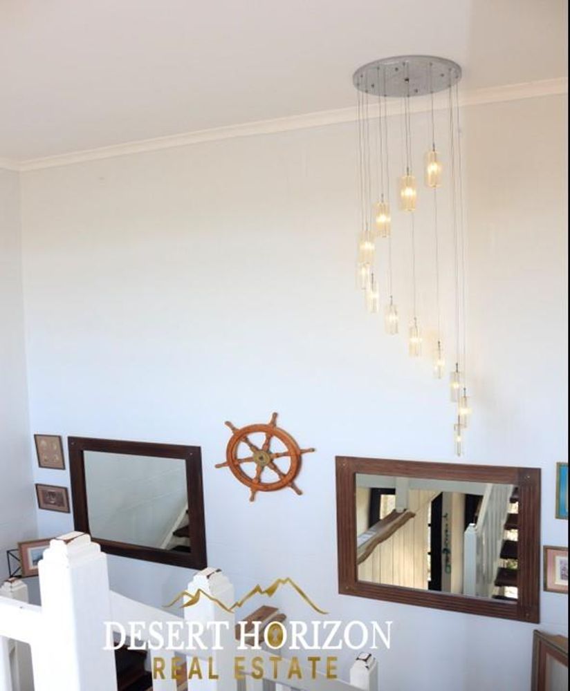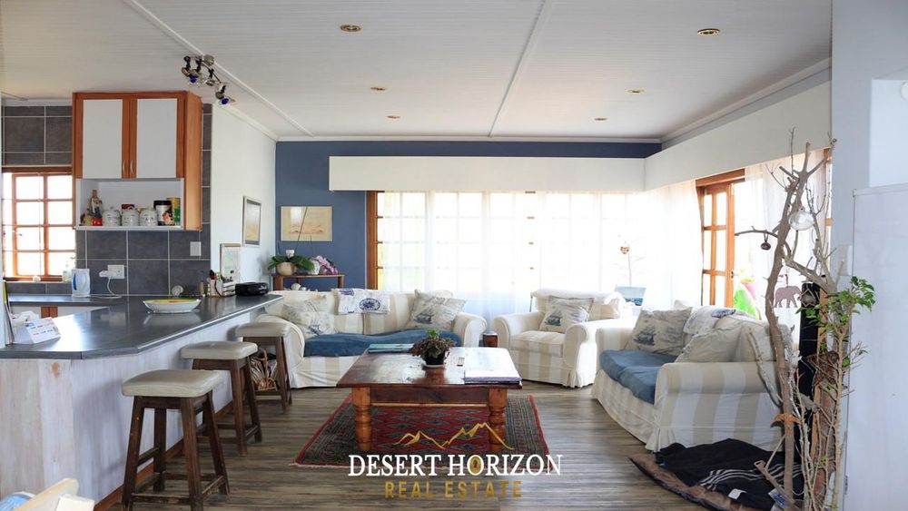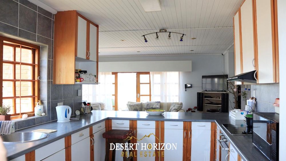 Charming 1-bedroom cottage with private beach pathway, a versatile 2-storey house featuring 5 bedrooms, 3 ensuites, and 3 WC toilets. Boasting 2 open-plan kitchens with a scullery, the house can be divided for flexible use. Ideal for Airbnb or a multi-generational family, it includes indoor/outdoor BBQ, sea views, a pizza oven, bar, fireplace, 2 balconies, nanny room, and more. Walk to the ocean from this enchanting home in Swakopmund—don't miss out!