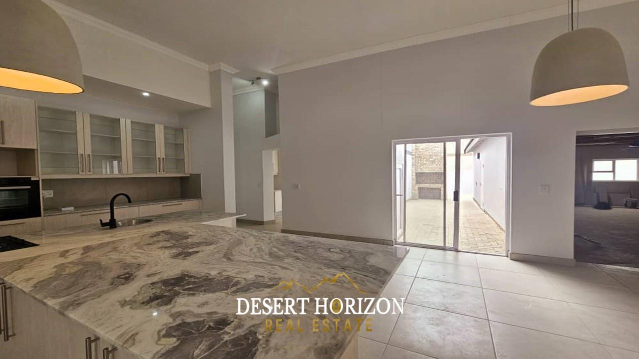 As you enter, you are greeted by a spacious reception area that seamlessly flows into a versatile room that can serve as an office or additional bedroom. The heart of the home is the expansive open-plan kitchen, which boasts beautiful large lights and a functional island with a gas stove. Adjacent to the kitchen is a dining area perfect for family gatherings. A generous scullery complements the kitchen, providing ample storage and utility space.
